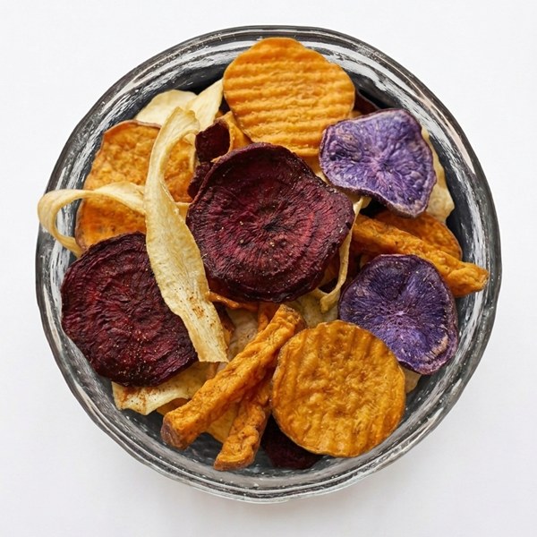 Τσιπς Λαχανικών παρασκευάζονται χρησιμοποιώντας λαχανικά.